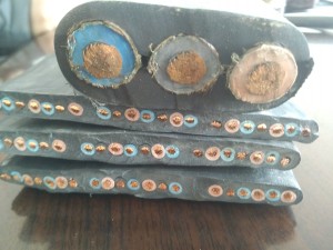 鋼芯銅導體軟芯結構丁腈絕緣纏繞耐火層編織不銹鋼絲鎧裝鋼包車用組合扁電纜 |